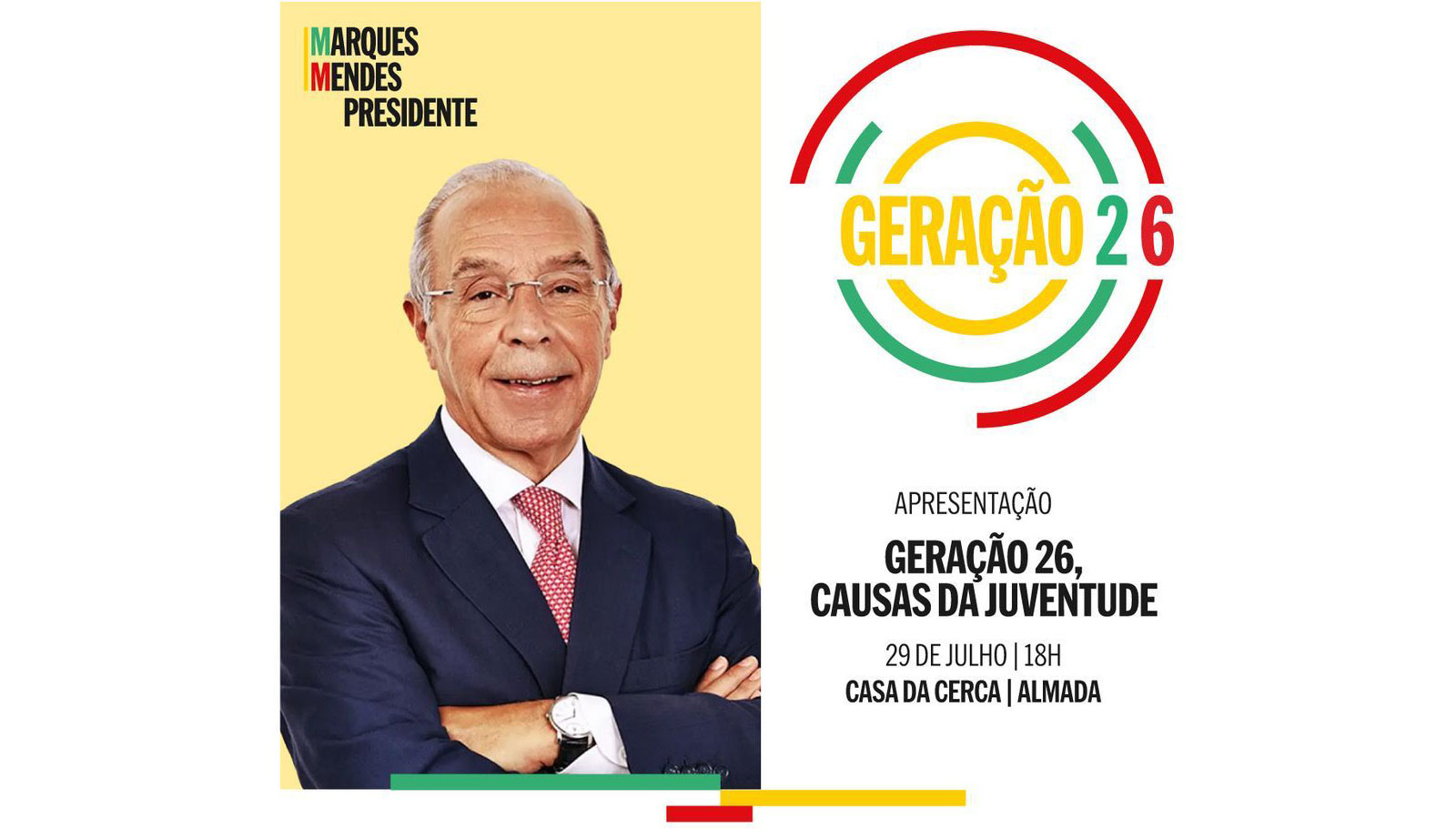 O candidato à Presidência da República, Luís Marques Mendes, convida-te para a Apresentação do Pacto Jovem, a realizar dia 29 de julho, às 18h, na Casa da Cerca - Almada.